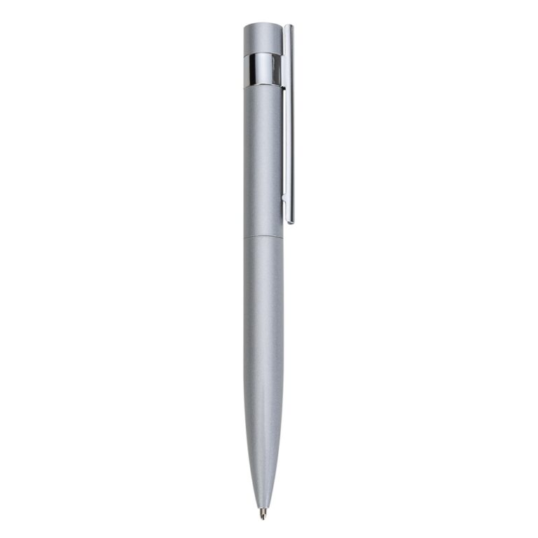 Caneta metálica com carga esferográfica azul e acionamento por rotação. OBS.: PEDIDO APENAS MÚLTIPLO DE 50 PEÇAS!